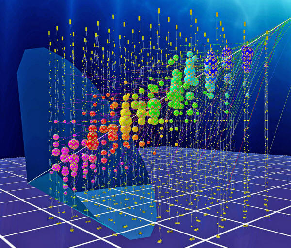 This visualization shows a particle passing through the KM3NET detector