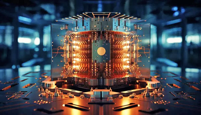 risplende di luci al neon, simboleggiando la prossima era della crittografia e della crittografia quantistica ultra sicura.