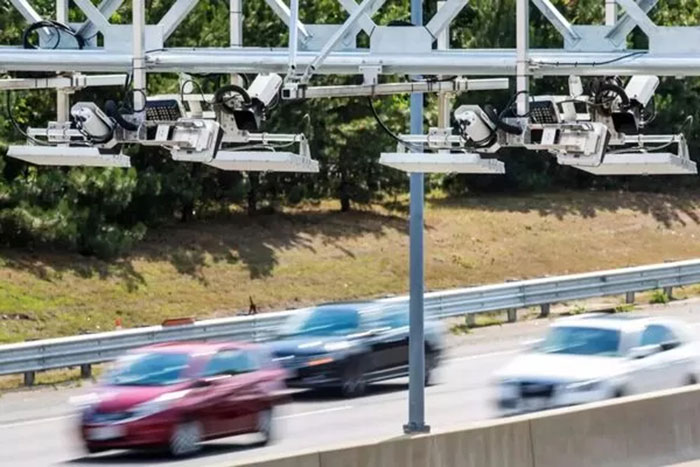 dotata di un lettore di targhe monitora i veicoli in transito per il tracciamento in tempo reale e l'applicazione delle norme di sicurezza.