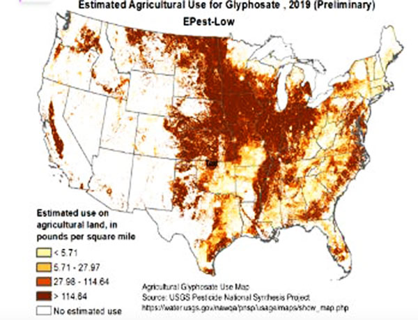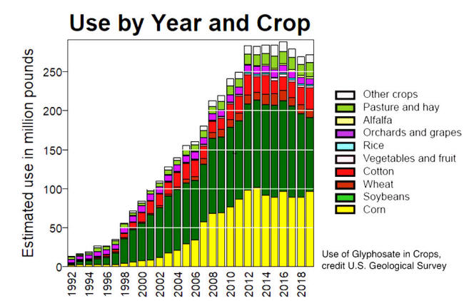 glyphosate-tolerant seeds, no-till practices, and even pre-harvest