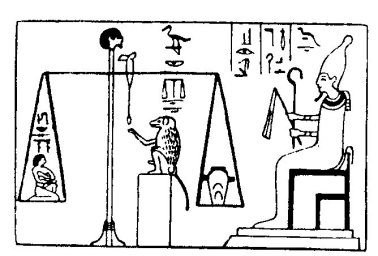 The Scales of Osiris, with weights.his hands are the symbols of "life,"