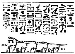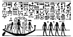 The Boat of Af-Ra in the Eleventh Division of the Tuat.boat is piloted by SA, who commands, and by HEKA, who steers according to his directions.