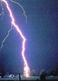 (Above left image - These high altitude discharge patterns are known as Blue Jets, Red