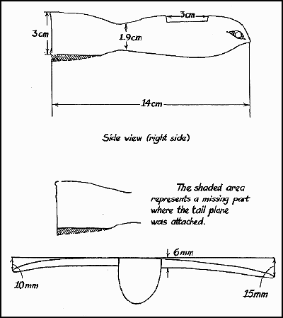 aerodynamically shaped wings, spanning about 7 inches. A separate