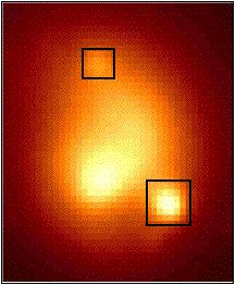 This image may look familiar. It is the image taken on July 16 of this year (1996), previously cited in this document (See Fig 3 ). The "object" in this picture, again is not a star, as it is not streaked as the stars in the background. The distance is similar to the previous picture. But notice that this object has a "halo" like field around the darker body, imaged because of the type of filter used.