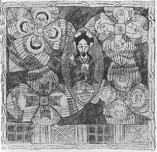 God Almighty the ancient of Days (Daniel vii. 9) surrounded by the "living creatures" seen by Ezekiel