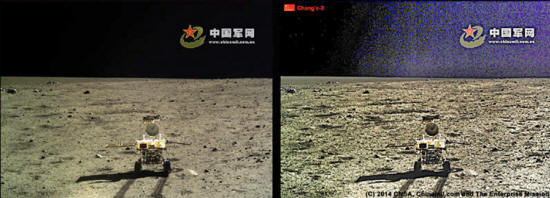 "Someone" in China had apparently... carefully... altered the original Chang'e-3 "landform camera" data - to conceal "something"... in the lunar sky... before releasing it to the Chinese broadcast networks (and thus, the rest of us).