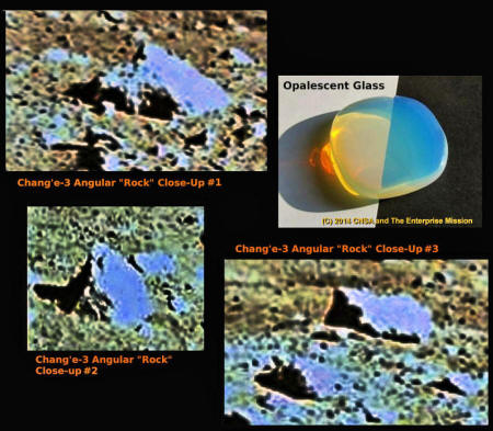 Ergo, such apparently abundant "opalescent" materials at the Chang'e-3 landing site... at ~19.5 West... could not POSSIBLY be "naturally-occurring, lunar 'opalescent glass'.''