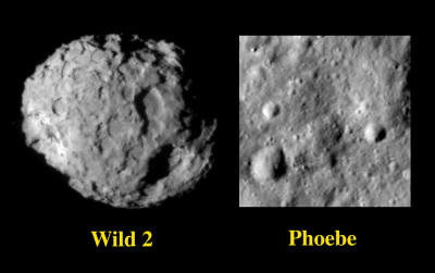 comet Wild 2 (below image). The heavily cratered terrain on all three objects was