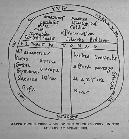 T-O map, 9th century manuscript, Strasburg. (oriented with East at the top) Slide #205 Monograph