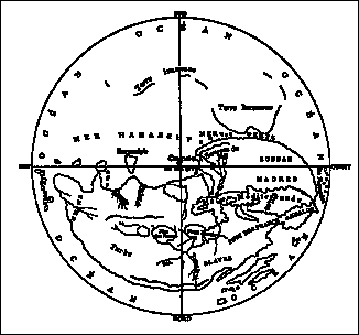 Reconstruction of Massaudy world map, pre-956 A.D. oriented with South at the top (from Beazley).