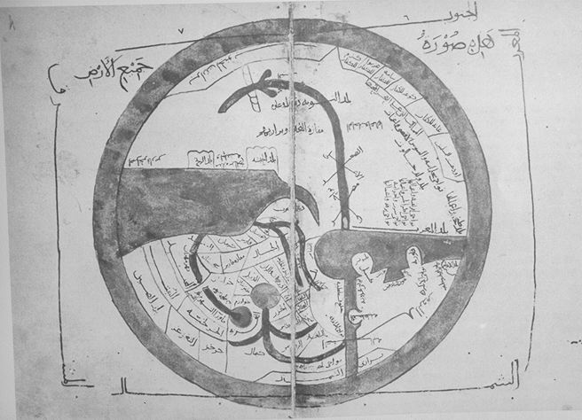Ibn Hawqal's world map, 1445 copy oriented with South at the top
