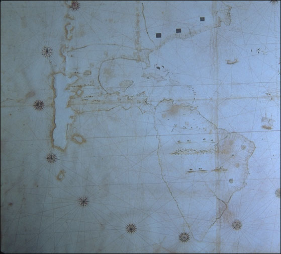world map, Girolamo de Verrazano, detail: North & South America, 1529