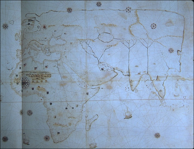 world map, detail: Eastern Hemisphere, Girolamo de Verrazano, 1529
