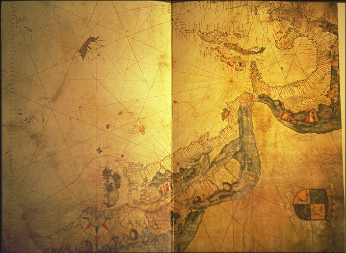 Harleian Map, detail: east coast of North America, Pierre Descelier or Jean Rotz ?, 1544
