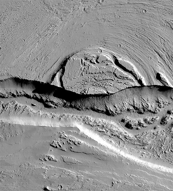 terraced mounds in Arabia Terra, as well as both Martian poles