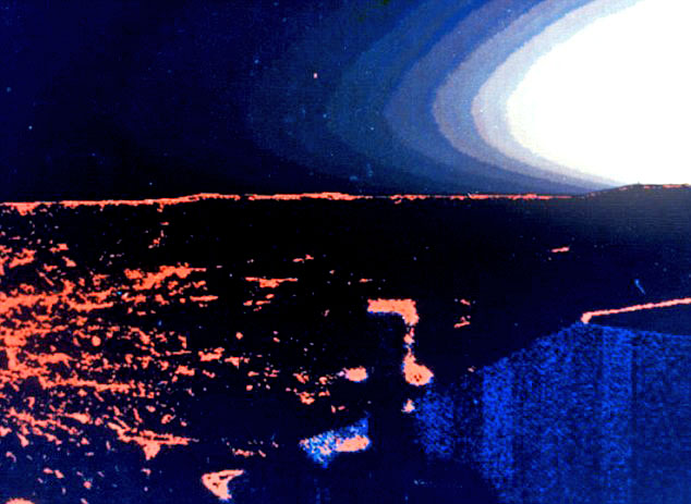 Mars skyline at sunset, pictured from the Viking lander