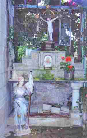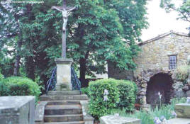 In 1891, he asked the town council for the right to build a calvary before the church. In spring, Bérenger Saunière began to work on the garden in front of the church. He brought stones from the country himself to build a grotto. He also build a calvary on which was written "Christus A. O. M. P. S. Defendit".