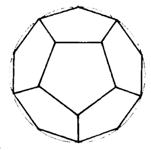 Then, if you put a dot in the center of each pentagon on the dodecahedron and connect all of the dots together, you will have a series of lines that form five-pointed stars that create the icosahedron shape, the last major node before the return to the Sphere.