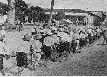 The three-day drink is today called chicha, the Indian's native beer, a fermented, alcoholic fluid whose preparation requires three days. As with all indigenous customs, this too is exemplified in the mythical part of the Popol Vuh. When there are reasons for rejoicing, the Indians still drink the chicha together, as did the 400 boys celebrating the supposed death of Zipacná. On the third day when the chicha was ready, the boys proposed to drink it on the very spot where they thought they had killed the giant, hoping then to see the ants attracted by the cadaver. But Zipacná, who heard everything they said -- as explained above -- had cut hair from his head and chewed off his nails to give them to the ants and so deceived the boys. Seeing these remains of Zipacná being taken by the ants, the boys became drunk on the chicha and fell into a stupor.