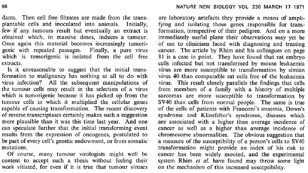 - Nature New Biology Vol 230 March 17 1971, pp.65-66.