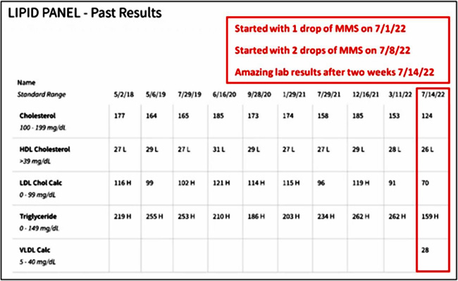 I saw a note from a late-aged individual who has been using chlorine dioxide for ten years.