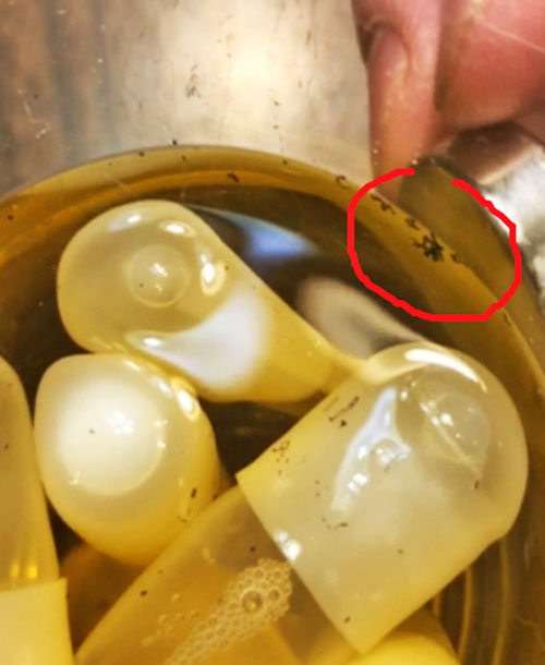 which the black "ink" from the capsules turned into black specs that