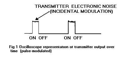 Our early experimentation, performed using transmitters with very short square pulses and high pulse repetition rates, seemed to indicate that we were dealing with harmonics of the PRF. However, our later work has indicated that this is not the case; rather, the rf sound appears to be the incidental modulation envelope on each pulse, as shown in Fig. 1