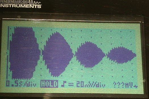 The image Above shows a photo of an oscilloscope trace with the mass set to vibrate at 50.7 Hz.