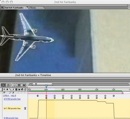 (Note that because of the key-frame interpolation method used here in After Effects, the program I used to make this analysis, the speed value displayed is that of the next key-frame forward, so you have to read the speed value from one frame back).