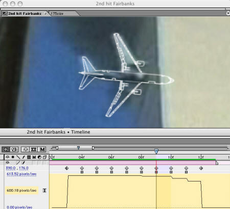 By overlaying the 767 graphic over the plane the motion can be matched and any differences in speed of the actual plane will be reflected in the speed of the graphic overlay.