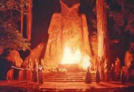 mock child sacrifice performed in front of a forty-foot stone owl called