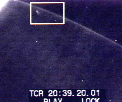 bright UFOs are making manoeuvers... An impressive UFO encounter was unintentionally captured on video cameras installed onboard the Discovery space shuttle. This bizarre incident occurred on 15th September 1991 and was recorded over Australia.