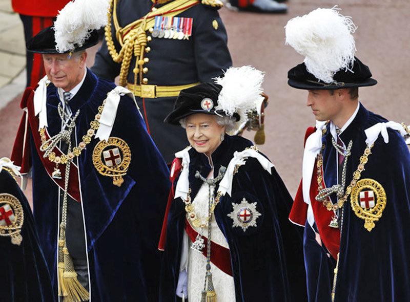 The red cross also turns up on the regalia of Britain's most prestigious chivalric Order of the Garter, the members (Knights) of which are appointed by Queen Elizabeth II herself.