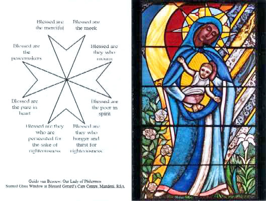 Los hábitos de la Orden del Hospital de San Juan de Jerusalén, en un principio, eran negros, con una cruz blanca de ocho puntas que representan las ocho bienaventuranzas.