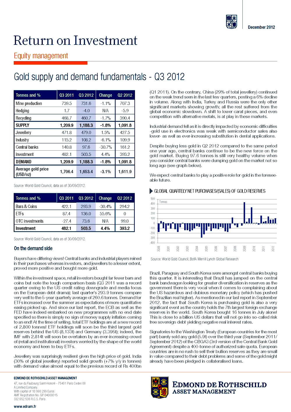 As Edmond de Rothschild’s France-based asset management company analyzes for 2013, the so called “emerging markets” are increasingly scooping great chunks of gold from the world’s supply: