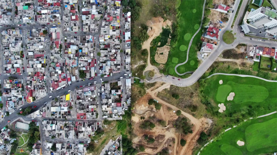 Allí las humildes viviendas del asentamiento Kennedy se sitúan al lado del exclusivo club de golf.