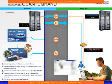 Referencing the NSA's Quantum malware initiative, the document, dated April 2011, explains how the NSA "pretends" to be Facebook servers to deploy its surveillance "implants" on target's computers: