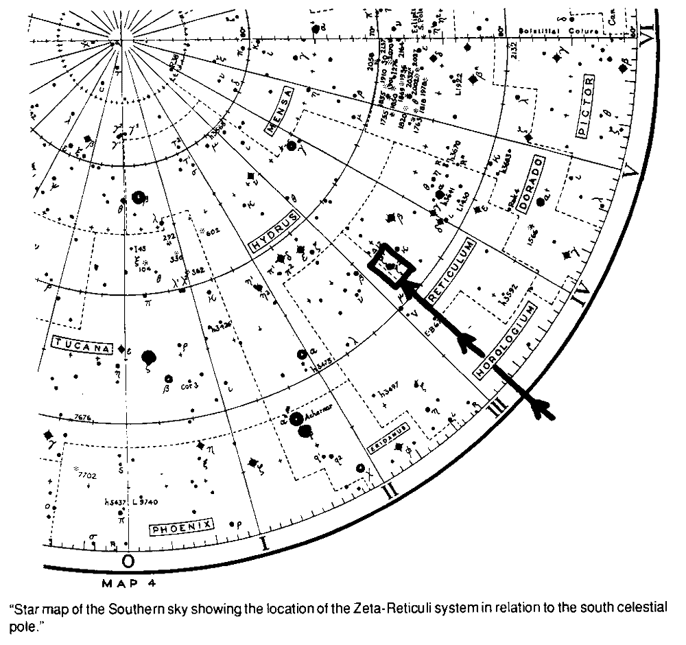 Starmap of the southern sky showing Zeta Reticuli system in relation