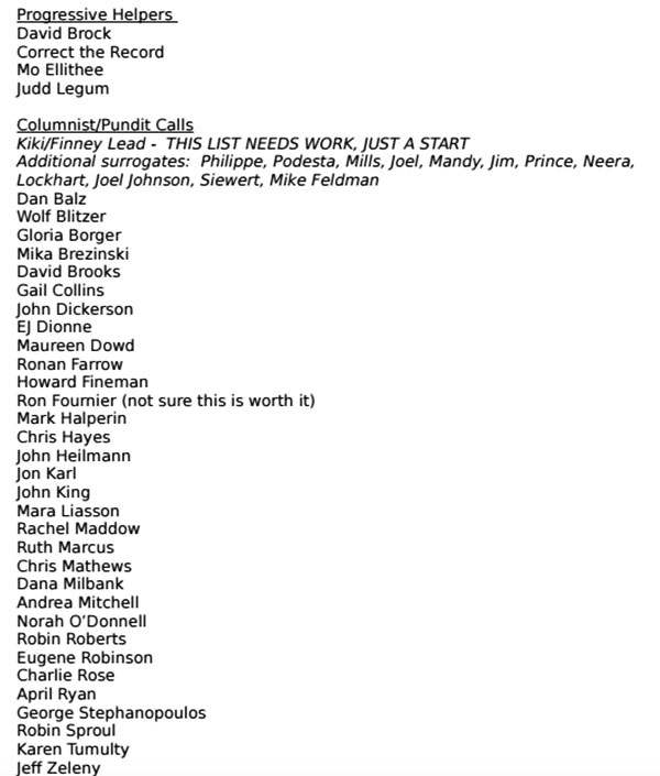 As the Intercept noted, a review of the metadata for one of the obtained documents found it had been penned by campaign communications director, Jennifer Palmieri - who created a list of ostensible pundits and journalists potentially amenable to targeting with the pro-Clinton message.