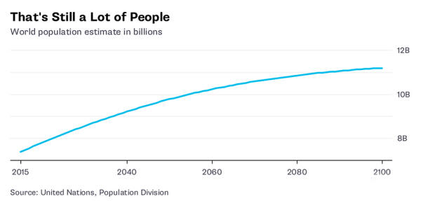 Thus, the United Nations continues to project that global population will rise from about 7.6 billion today to more than 11 billion by the end of the century. Nor will lower global population growth mean the end of all demographic problems.