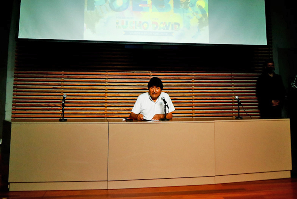 Former Bolivian President Evo Morales attends a press conference in Buenos Aires, Argentina, after general elections in his home country, Oct. 19. 2020. Marcos Brindicci - AP