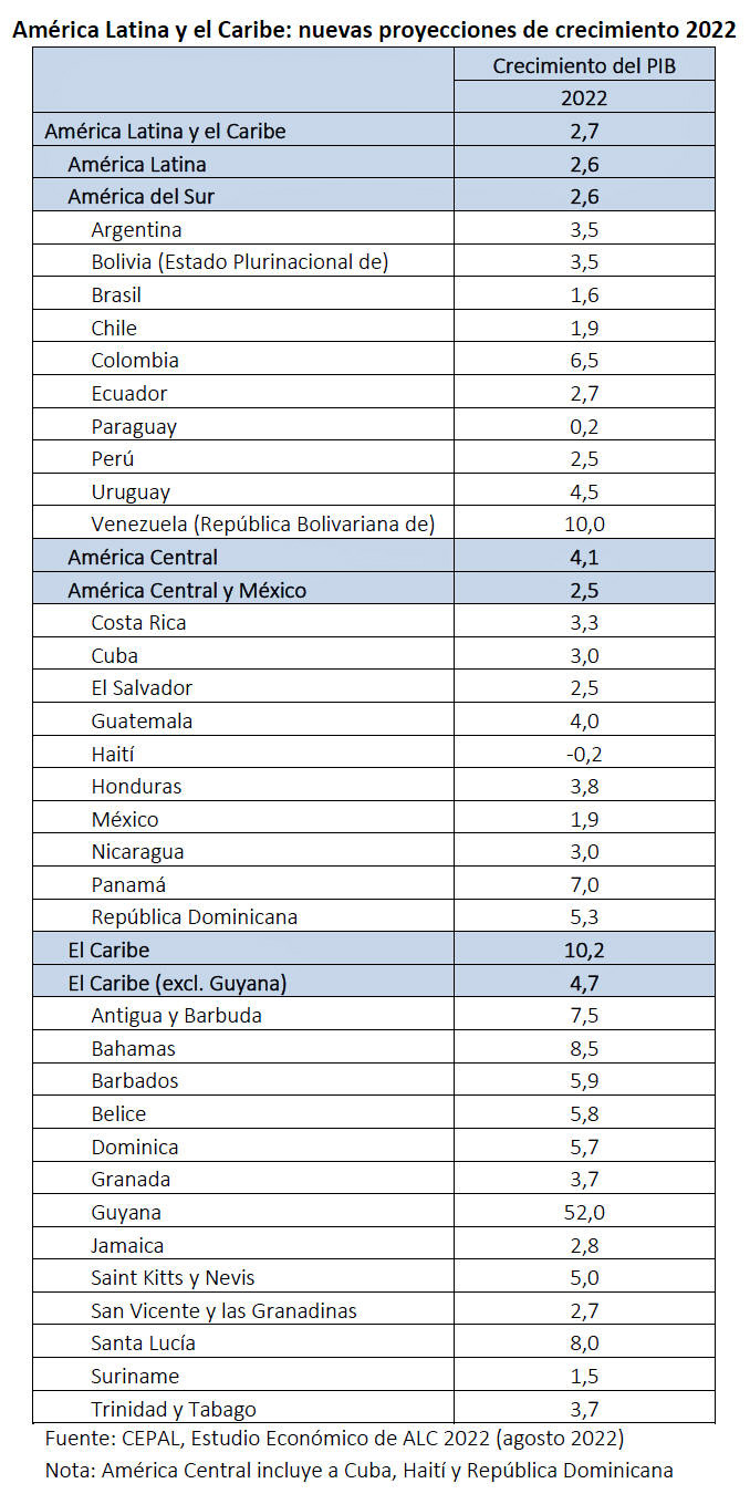 proyecta un crecimiento para 2022 de 2,7% promedio, en un contexto