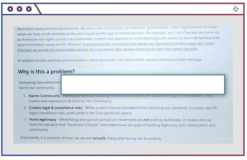 A 2019 internal review of Facebook's white-listing practices, marked attorney-client privileged, found favoritism to those users to be both widespread and "not publicly defensible."