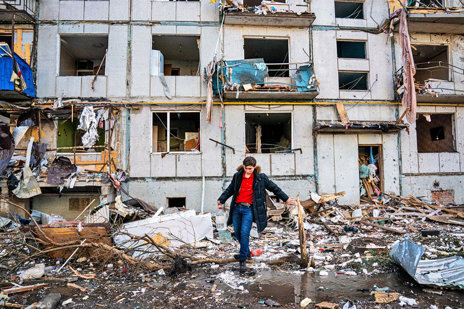 aftermath of Russian shelling