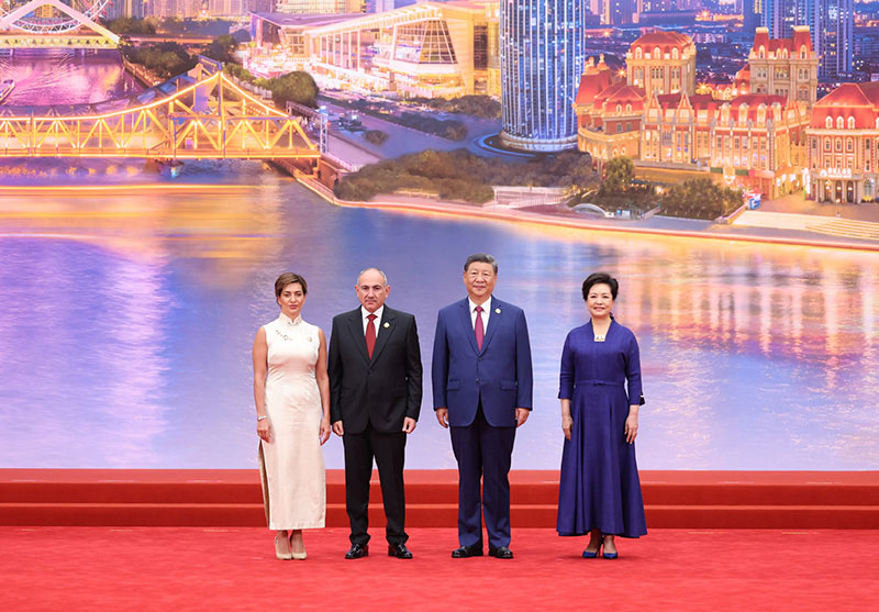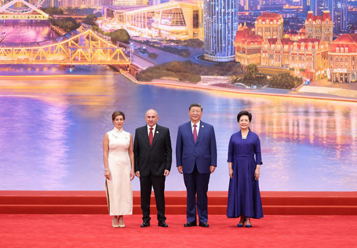 wife, Peng Liyuan, pose for a group photo with Armenian