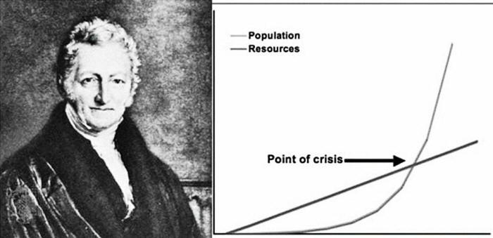 Thomas Malthus and the geometric ratio which he supposedly "discovered" proving that agriculture grows arithmetically while human populations grow geometrically. Source: Unlimited Hangout