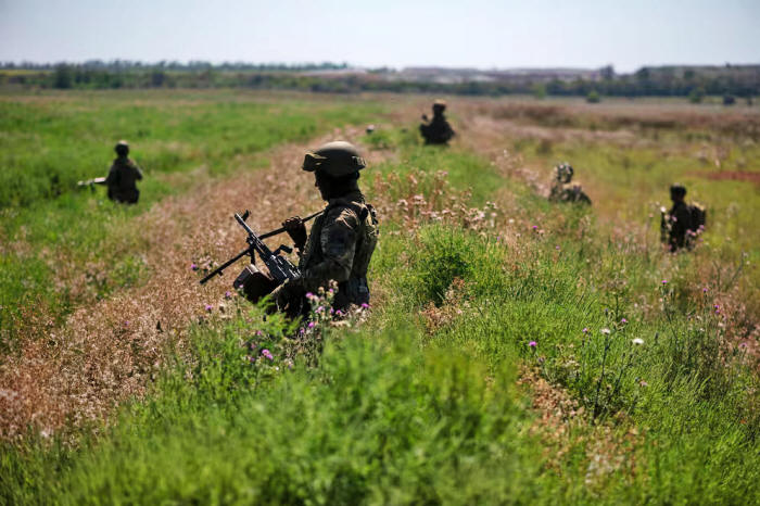Mercenarios colombianos que luchan por Ucrania, durante la realización de un ejercicio militar en el campo de entrenamiento el 15 de agosto de 2023, en Donetsk, Ucrania. Global Images Ukraine
