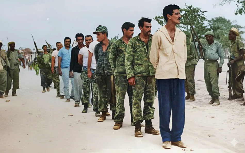 Una hilera de contrarrevolucionarios detenidos tras el fallido desembarco en Bahía de Cochinos. El episodio resultó profundamente traumático para Cuba. Lejos de alcanzar sus objetivos, Washington aceleró la radicalización del proceso, empujando a La Habana a los brazos del comunismo soviético y facilitando que, apenas un año después, se autorizara el despliegue de misiles nucleares en la isla.