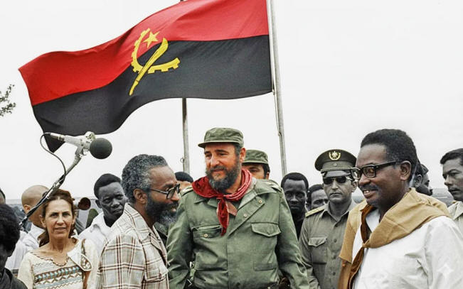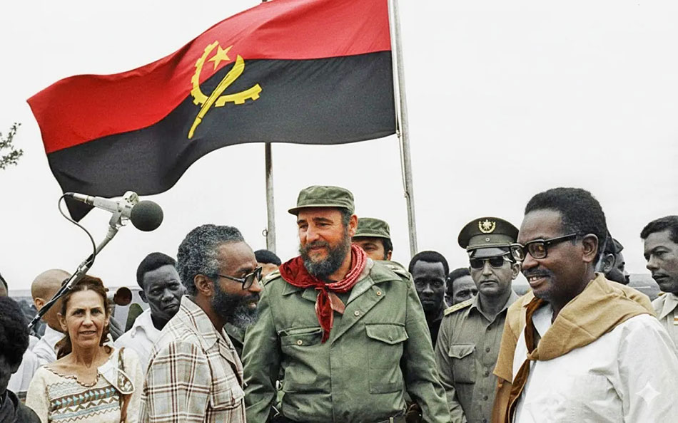 El 5 de noviembre de 1975, a solicitud del Movimiento Popular para la Liberación de Angola (MPLA), el gobierno cubano, en su rol internacionalista, montó la Operación Carlota, enviando un batallón de tropas especiales del Ministerio del Interior, que luego se extendería a varios miles de soldados. En la foto, Fidel Castro con António Agostinho Neto, líder del MPLA. La intervención cubana luego influyó en la liberación de Namibia (marzo de 1990) y el fin del sistema de segregación racial en Sudáfrica.